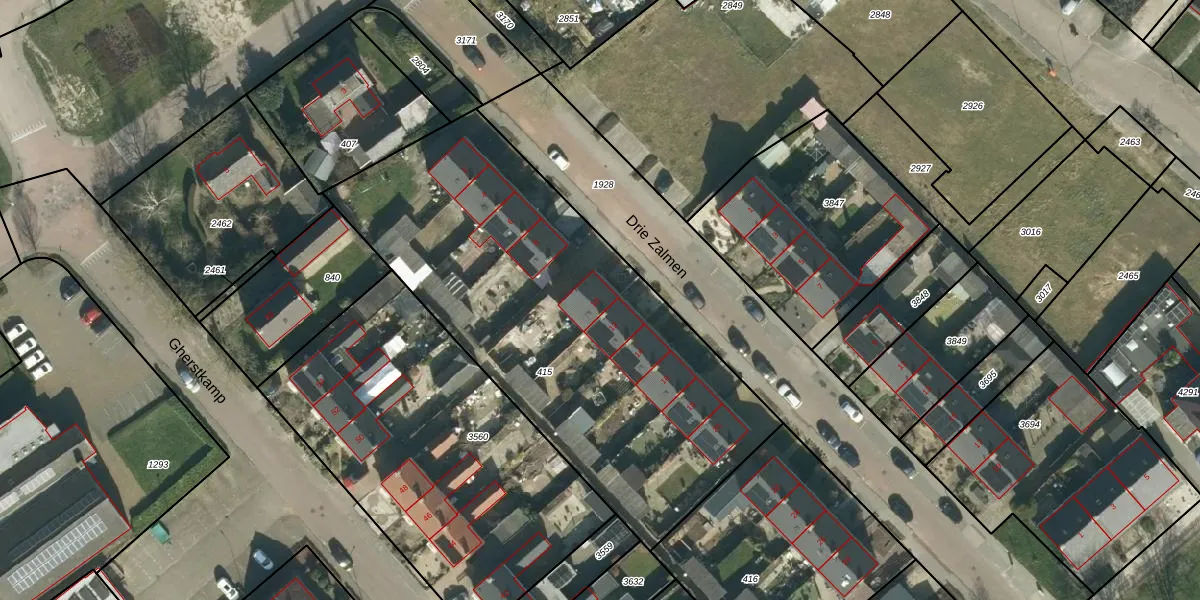 Het perceel waarop Drie Zalmen 10 staat heeft een oppervlakte van 2280 m². Dit is een zeer groot perceel. De perceeloppervlakte wordt geregistreerd door het Kadaster. Gedetailleerde informatie over de maten van dit perceel kunt u vinden in het rapport Kadastrale kaart met maatvoering van Drie Zalmen 10.