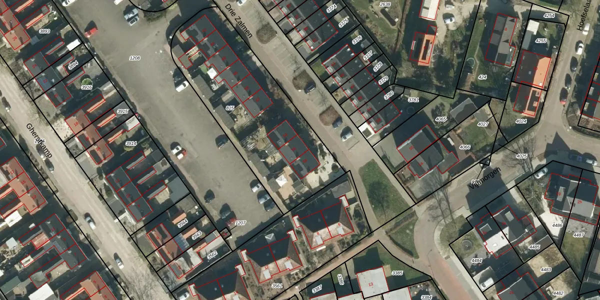 Het perceel waarop Drie Zalmen 56 staat heeft een oppervlakte van 1690 m². Dit is een zeer groot perceel. De perceeloppervlakte wordt geregistreerd door het Kadaster. Gedetailleerde informatie over de maten van dit perceel kunt u vinden in het rapport Kadastrale kaart met maatvoering van Drie Zalmen 56.