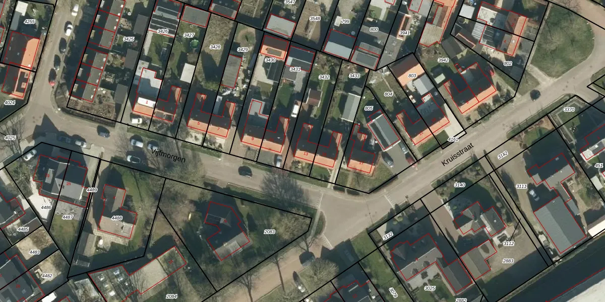 Vijfmorgen 13 is gelegen op kadastraal perceel WDC00H3432. Deze kadastrale aanduiding is uniek en wordt gebruikt door het Kadaster om eigendomsrechten en andere zakelijke rechten vast te leggen. Het perceel maakt onderdeel uit van de kadastrale gemeente Woudrichem.