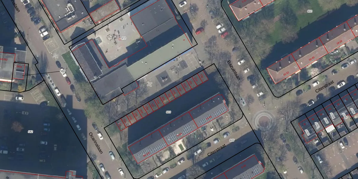Het perceel waarop Ocarinalaan 21-l staat heeft een oppervlakte van 2435 m². Dit is een zeer groot perceel. De perceeloppervlakte wordt geregistreerd door het Kadaster. Gedetailleerde informatie over de maten van dit perceel kunt u vinden in het rapport Kadastrale kaart met maatvoering van Ocarinalaan 21-l.