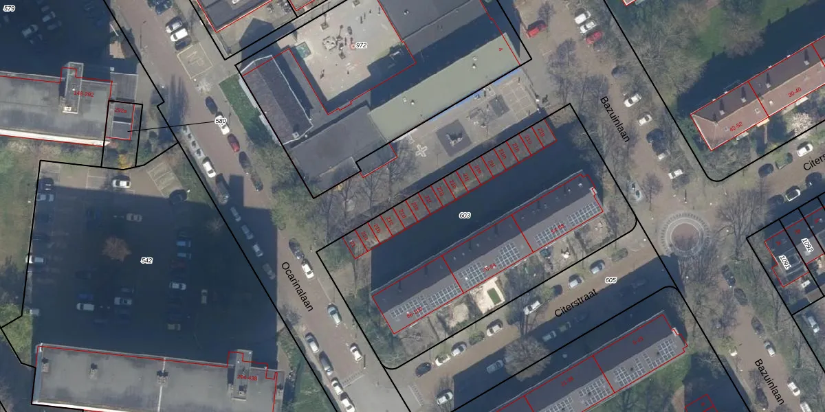Het adres is gelegen op perceel 603 in de sectie H en de kadastrale gemeente Rijswijk. De kadastrale aanduiding is aldus RWK01-H-603. De gemiddelde perceeloppervlakte in de kadastrale gemeente Rijswijk is 1115,72 m². Dit perceel is met zijn 2435 m² dus groter dan gemiddeld. De grootste perceeloppervlakte in de kadastrale gemeente is 44,3 ha. De kleinste oppervlakte bedraagt 0 m². Er zijn 40 adressen aanwezig op het perceel. De huidige grenzen van het perceel zijn digitaal in de Basisregistratie Kadaster (BRK) geregistreerd op 22-05-2003.