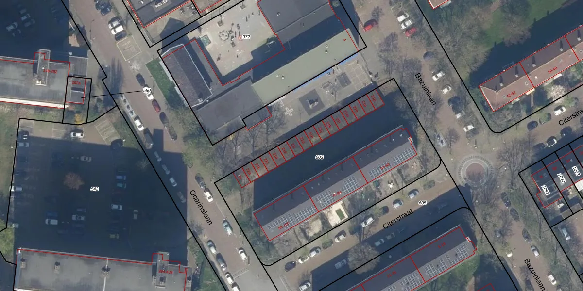 Het perceel waarop Ocarinalaan 21-f staat heeft een oppervlakte van 2435 m². Dit is een zeer groot perceel. De perceeloppervlakte wordt geregistreerd door het Kadaster. Gedetailleerde informatie over de maten van dit perceel kunt u vinden in het rapport Kadastrale kaart met maatvoering van Ocarinalaan 21-f.