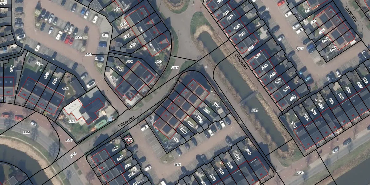 Het perceel waarop Oleander 14 staat heeft een oppervlakte van 162 m². Dit is een middelgroot perceel. De perceeloppervlakte wordt geregistreerd door het Kadaster. Gedetailleerde informatie over de maten van dit perceel kunt u vinden in het rapport Kadastrale kaart met maatvoering van Oleander 14.