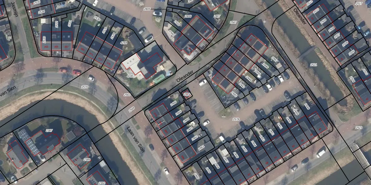 Het perceel waarop Oleander 2 staat heeft een oppervlakte van 21 m². Dit is een klein perceel. De perceeloppervlakte wordt geregistreerd door het Kadaster. Gedetailleerde informatie over de maten van dit perceel kunt u vinden in het rapport Kadastrale kaart met maatvoering van Oleander 2.