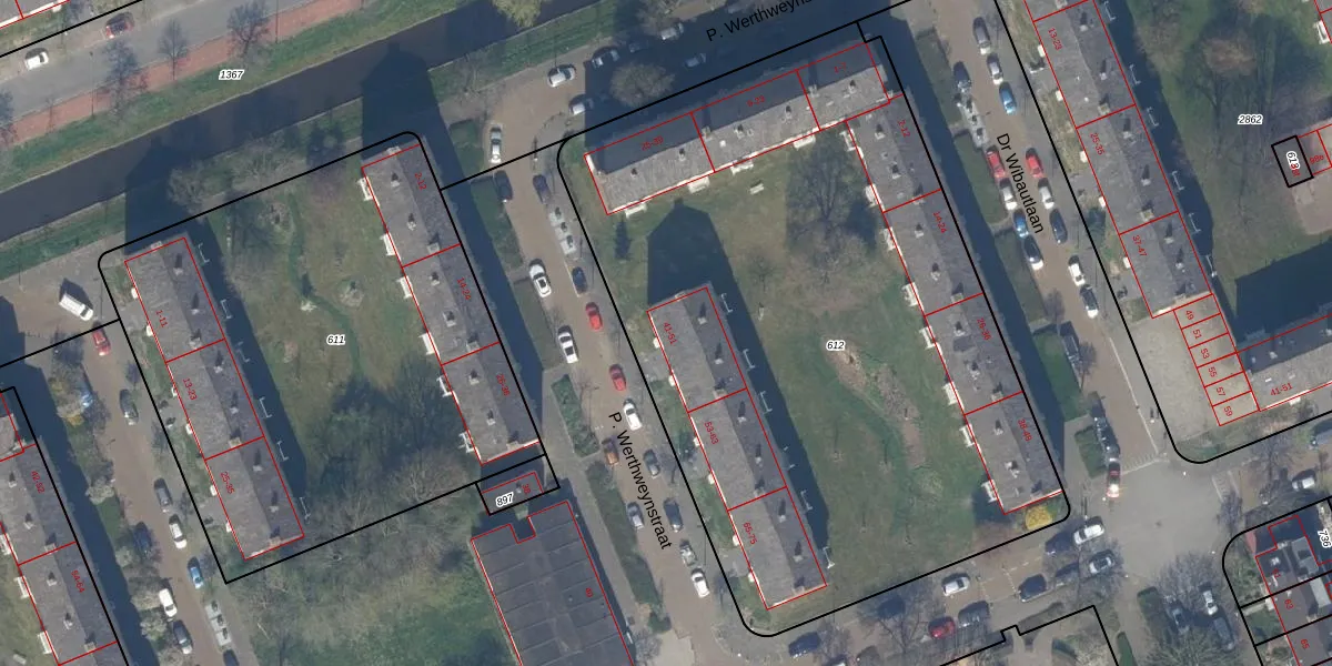 Het perceel waarop P. Werthweynstraat 41 staat heeft een oppervlakte van 4022 m². Dit is een zeer groot perceel. De perceeloppervlakte wordt geregistreerd door het Kadaster. Gedetailleerde informatie over de maten van dit perceel kunt u vinden in het rapport Kadastrale kaart met maatvoering van P. Werthweynstraat 41.
