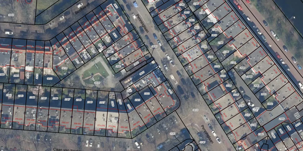 Penninglaan 21 is gelegen op kadastraal perceel RWK01A2320. Deze kadastrale aanduiding is uniek en wordt gebruikt door het Kadaster om eigendomsrechten en andere zakelijke rechten vast te leggen. Het perceel maakt onderdeel uit van de kadastrale gemeente Rijswijk.