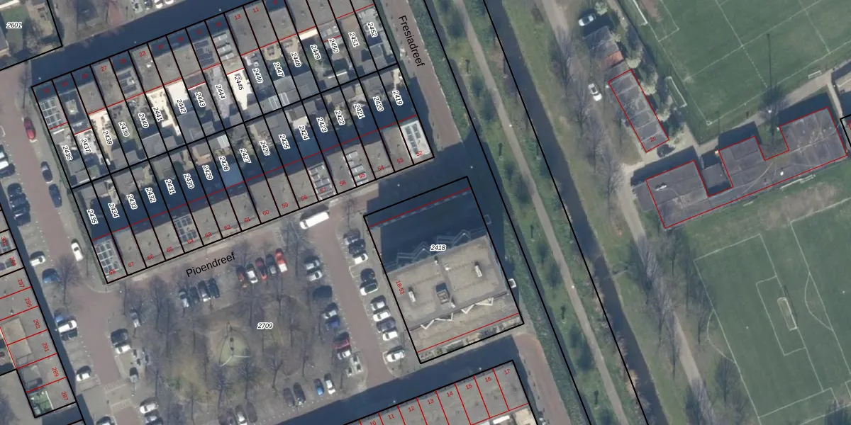 Pioendreef 49 is gelegen op kadastraal perceel RWK01C2418. Deze kadastrale aanduiding is uniek en wordt gebruikt door het Kadaster om eigendomsrechten en andere zakelijke rechten vast te leggen. Het perceel maakt onderdeel uit van de kadastrale gemeente Rijswijk.