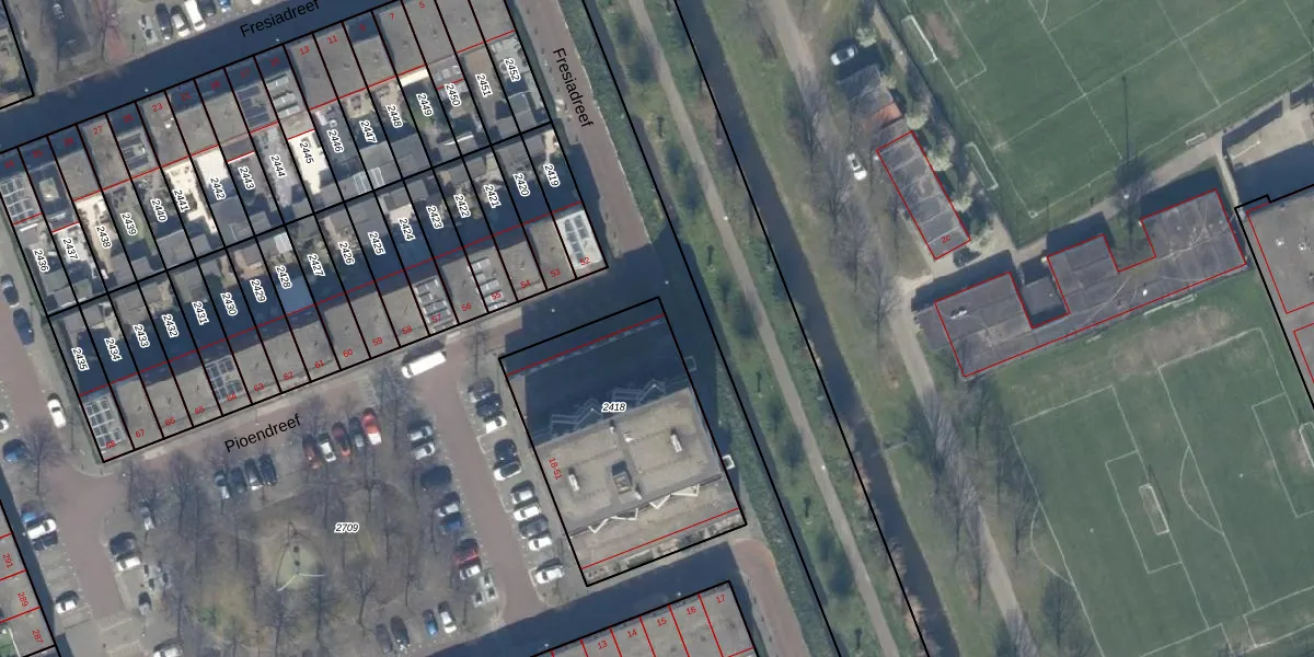 Pioendreef 51 is gelegen op kadastraal perceel RWK01C2418. Deze kadastrale aanduiding is uniek en wordt gebruikt door het Kadaster om eigendomsrechten en andere zakelijke rechten vast te leggen. Het perceel maakt onderdeel uit van de kadastrale gemeente Rijswijk.