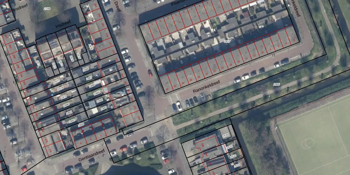 Ranonkeldreef 32 is gelegen op kadastraal perceel RWK01C2417. Deze kadastrale aanduiding is uniek en wordt gebruikt door het Kadaster om eigendomsrechten en andere zakelijke rechten vast te leggen. Het perceel maakt onderdeel uit van de kadastrale gemeente Rijswijk.
