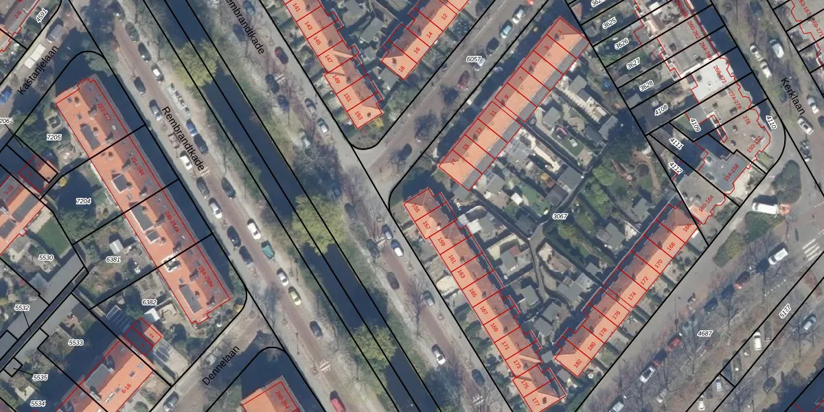 Rembrandtkade 155 is gelegen op kadastraal perceel RWK01D3067. Deze kadastrale aanduiding is uniek en wordt gebruikt door het Kadaster om eigendomsrechten en andere zakelijke rechten vast te leggen. Het perceel maakt onderdeel uit van de kadastrale gemeente Rijswijk.