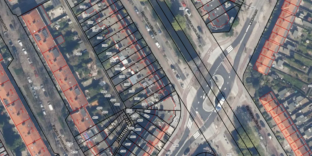 Het perceel waarop Rembrandtkade 176 staat heeft een oppervlakte van 184 m². Dit is een middelgroot perceel. De perceeloppervlakte wordt geregistreerd door het Kadaster. Gedetailleerde informatie over de maten van dit perceel kunt u vinden in het rapport Kadastrale kaart met maatvoering van Rembrandtkade 176.
