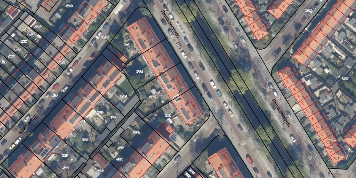 Rembrandtkade 252 is gelegen op kadastraal perceel RWK01D6381. Deze kadastrale aanduiding is uniek en wordt gebruikt door het Kadaster om eigendomsrechten en andere zakelijke rechten vast te leggen. Het perceel maakt onderdeel uit van de kadastrale gemeente Rijswijk.