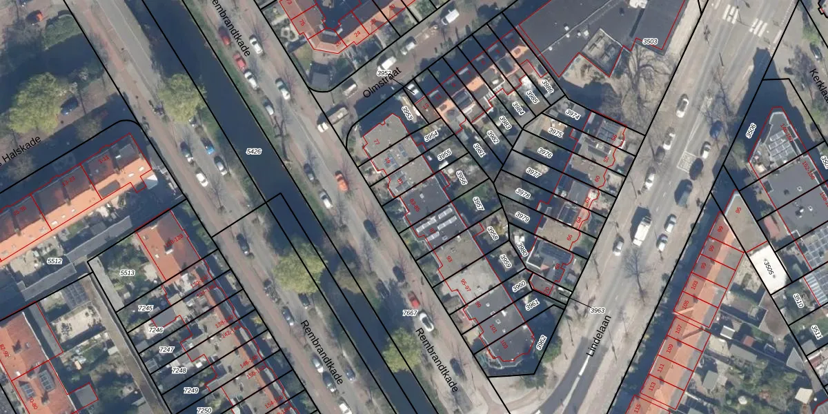 Het perceel waarop Rembrandtkade 85 staat heeft een oppervlakte van 196 m². Dit is een middelgroot perceel. De perceeloppervlakte wordt geregistreerd door het Kadaster. Gedetailleerde informatie over de maten van dit perceel kunt u vinden in het rapport Kadastrale kaart met maatvoering van Rembrandtkade 85.