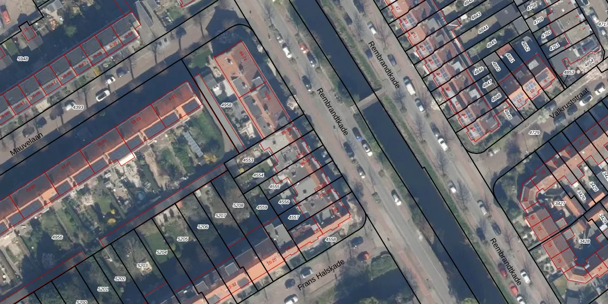 Het perceel waarop Rembrandtkade 94 staat heeft een oppervlakte van 186 m². Dit is een middelgroot perceel. De perceeloppervlakte wordt geregistreerd door het Kadaster. Gedetailleerde informatie over de maten van dit perceel kunt u vinden in het rapport Kadastrale kaart met maatvoering van Rembrandtkade 94.