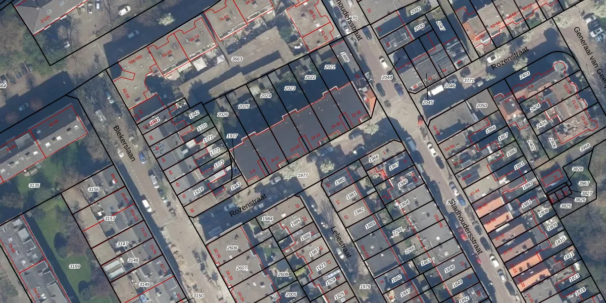 Rozenstraat 14 is gelegen op kadastraal perceel RWK01A2024. Deze kadastrale aanduiding is uniek en wordt gebruikt door het Kadaster om eigendomsrechten en andere zakelijke rechten vast te leggen. Het perceel maakt onderdeel uit van de kadastrale gemeente Rijswijk.