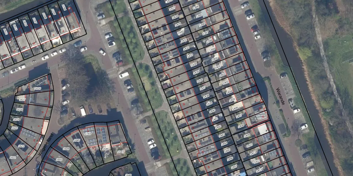 Gebruik de zoekbalk of klik op een perceel voor informatie over de adressen binnen dit perceel.