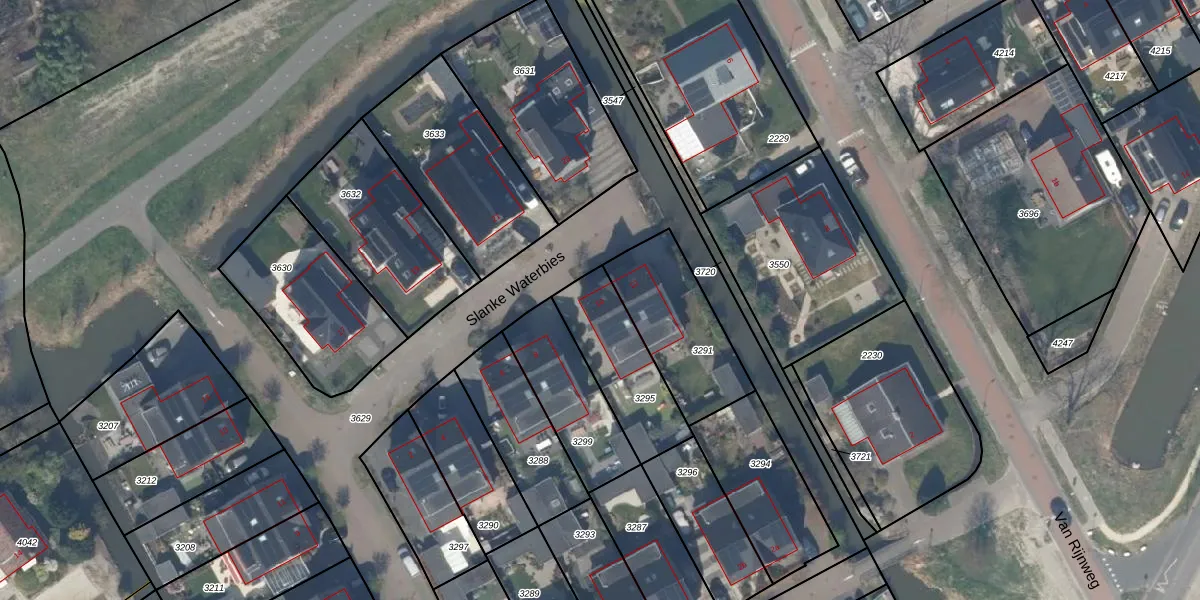 Slanke Waterbies 10 is gelegen op kadastraal perceel RWK01I3295. Deze kadastrale aanduiding is uniek en wordt gebruikt door het Kadaster om eigendomsrechten en andere zakelijke rechten vast te leggen. Het perceel maakt onderdeel uit van de kadastrale gemeente Rijswijk.