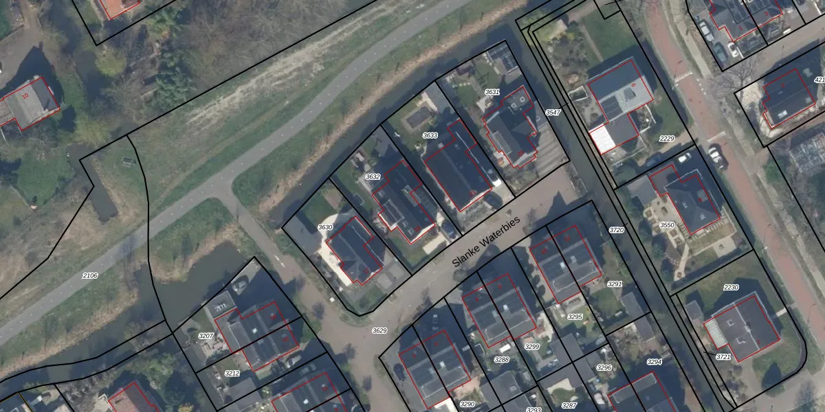 Slanke Waterbies 19 is gelegen op kadastraal perceel RWK01I3632. Deze kadastrale aanduiding is uniek en wordt gebruikt door het Kadaster om eigendomsrechten en andere zakelijke rechten vast te leggen. Het perceel maakt onderdeel uit van de kadastrale gemeente Rijswijk.