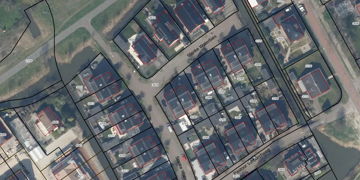 Slanke Waterbies 4 is gelegen op kadastraal perceel RWK01I3290. Deze kadastrale aanduiding is uniek en wordt gebruikt door het Kadaster om eigendomsrechten en andere zakelijke rechten vast te leggen. Het perceel maakt onderdeel uit van de kadastrale gemeente Rijswijk.