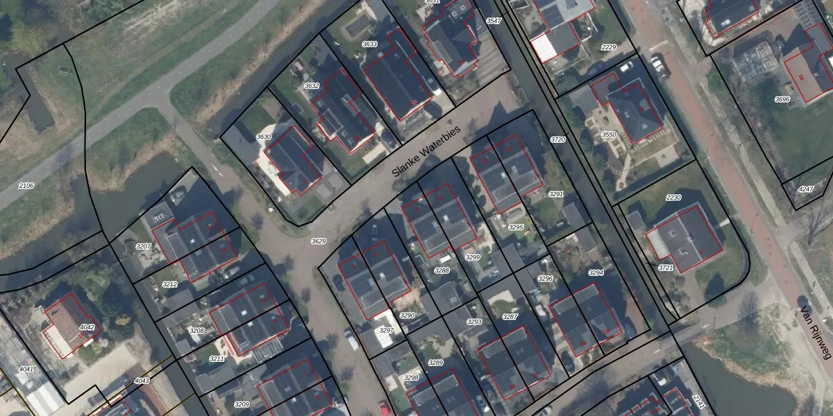 Slanke Waterbies 6 is gelegen op kadastraal perceel RWK01I3288. Deze kadastrale aanduiding is uniek en wordt gebruikt door het Kadaster om eigendomsrechten en andere zakelijke rechten vast te leggen. Het perceel maakt onderdeel uit van de kadastrale gemeente Rijswijk.