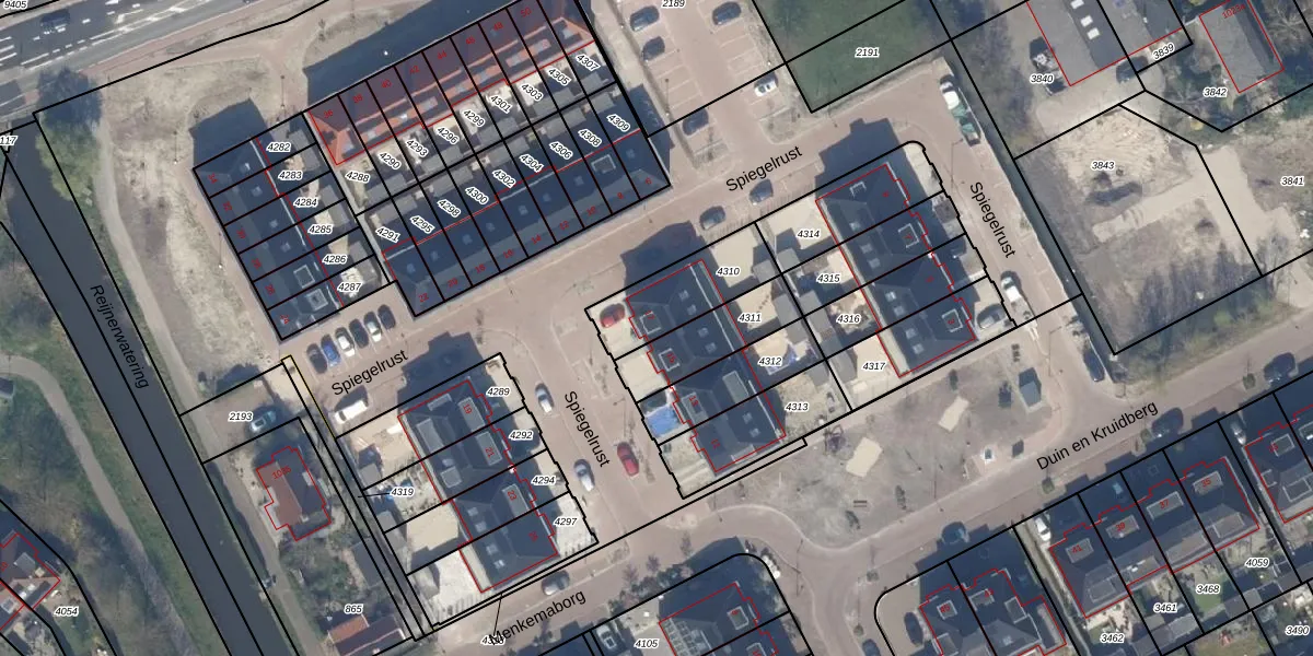 Het perceel waarop Spiegelrust 17 staat heeft een oppervlakte van 259 m². Dit is een middelgroot perceel. De perceeloppervlakte wordt geregistreerd door het Kadaster. Gedetailleerde informatie over de maten van dit perceel kunt u vinden in het rapport Kadastrale kaart met maatvoering van Spiegelrust 17.