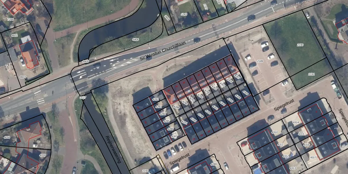 Spiegelrust 38 is gelegen op kadastraal perceel RWK01I4290. Deze kadastrale aanduiding is uniek en wordt gebruikt door het Kadaster om eigendomsrechten en andere zakelijke rechten vast te leggen. Het perceel maakt onderdeel uit van de kadastrale gemeente Rijswijk.