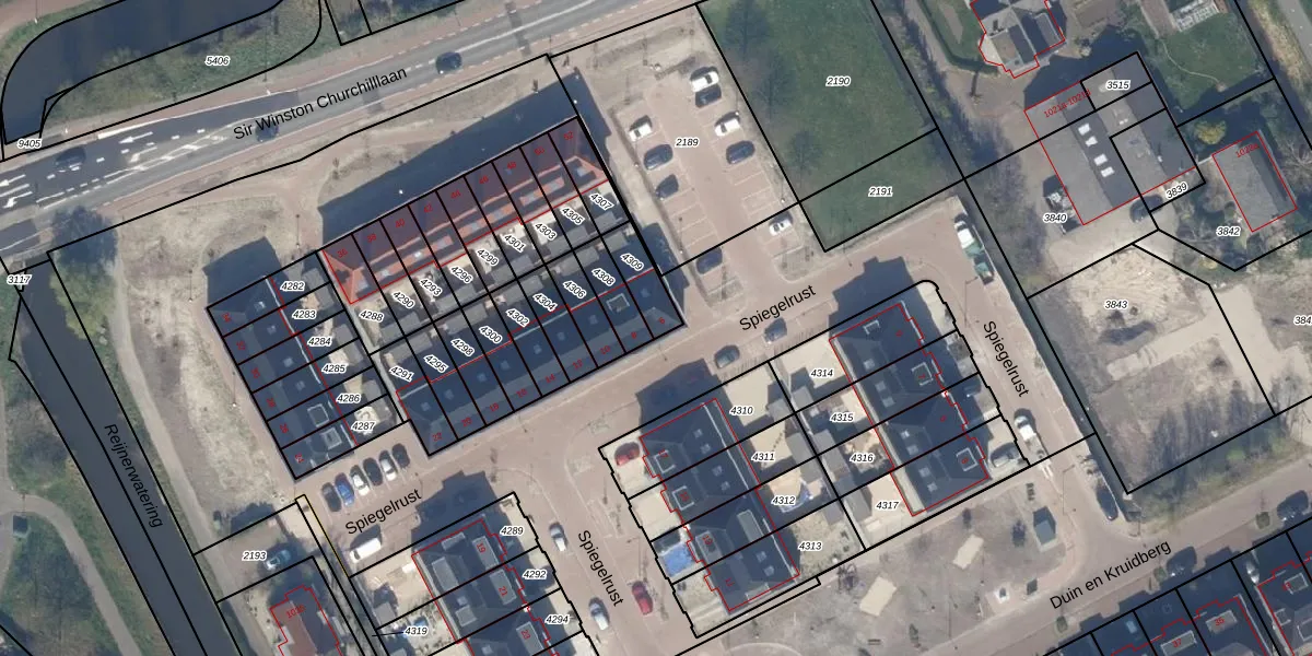 Het perceel waarop Spiegelrust 6 staat heeft een oppervlakte van 90 m². Dit is een klein perceel. De perceeloppervlakte wordt geregistreerd door het Kadaster. Gedetailleerde informatie over de maten van dit perceel kunt u vinden in het rapport Kadastrale kaart met maatvoering van Spiegelrust 6.