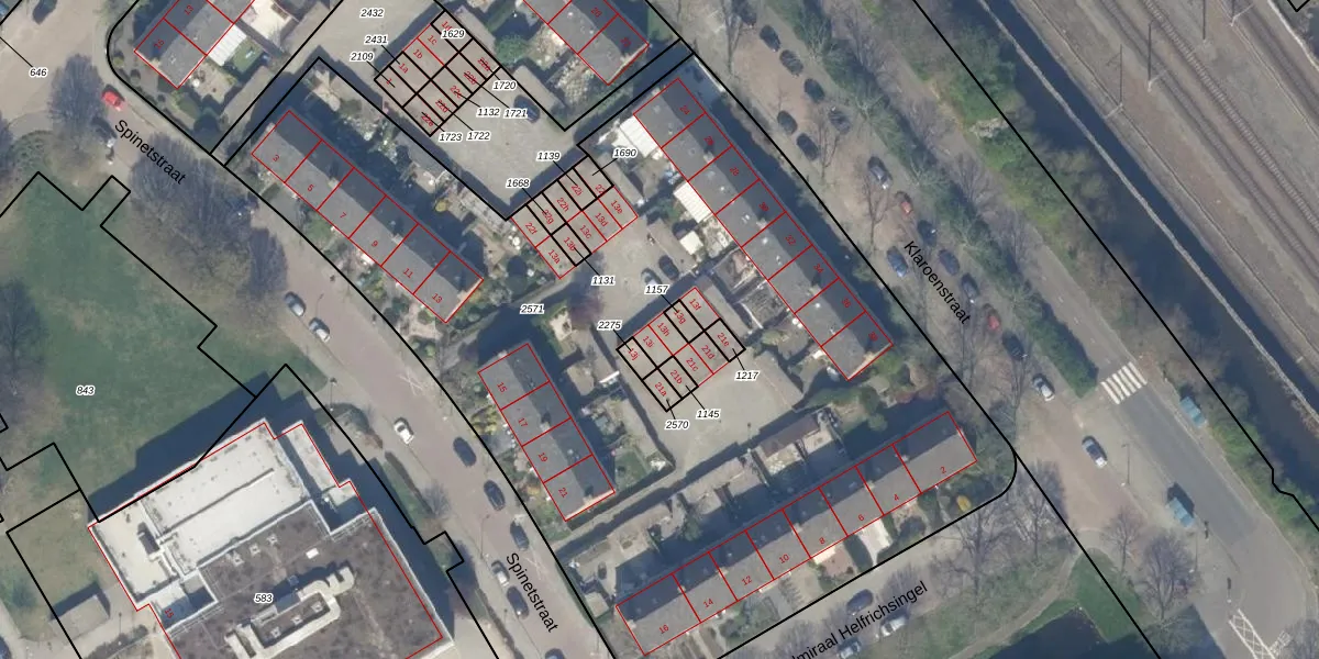 Het perceel waarop Spinetstraat 13-h staat heeft een oppervlakte van 5525 m². Dit is een zeer groot perceel. De perceeloppervlakte wordt geregistreerd door het Kadaster. Gedetailleerde informatie over de maten van dit perceel kunt u vinden in het rapport Kadastrale kaart met maatvoering van Spinetstraat 13-h.