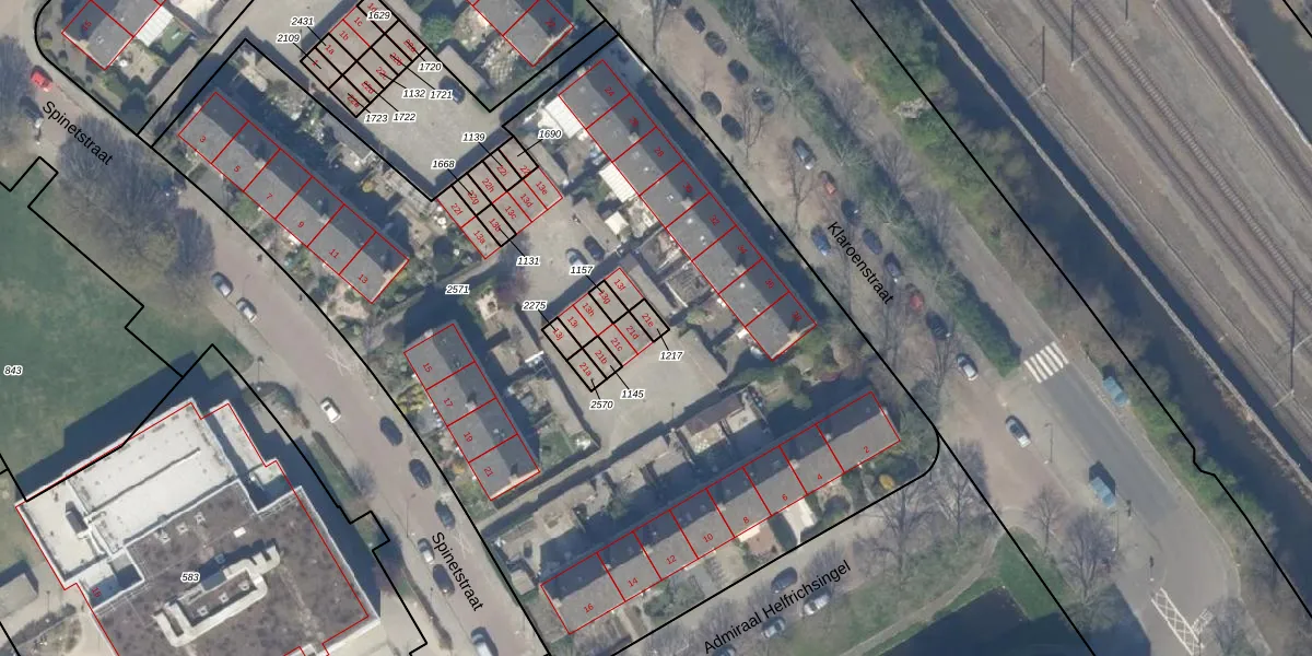 Gebruik de zoekbalk of klik op een perceel voor informatie over de adressen binnen dit perceel.