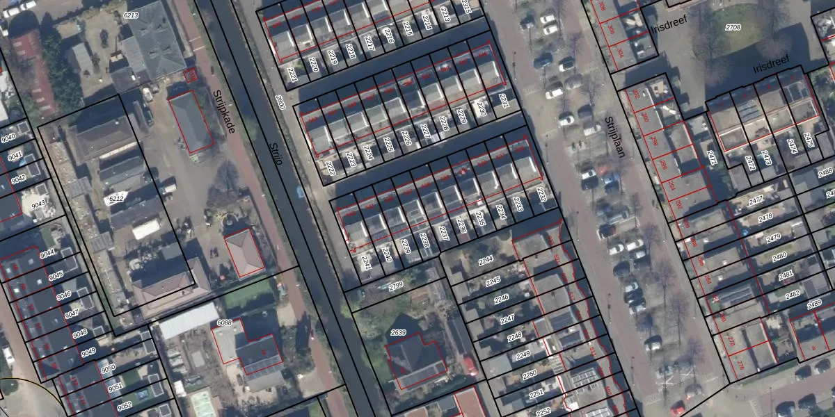 Gebruik de zoekbalk of klik op een perceel voor informatie over de adressen binnen dit perceel.