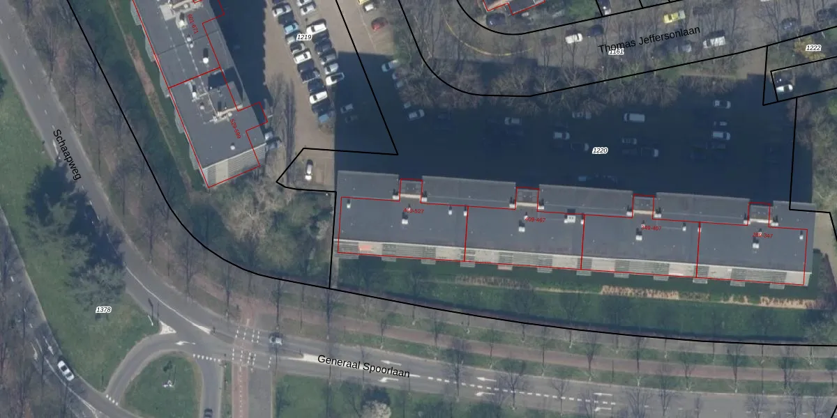 Thomas Jeffersonlaan 511 is gelegen op kadastraal perceel RWK01C1220. Deze kadastrale aanduiding is uniek en wordt gebruikt door het Kadaster om eigendomsrechten en andere zakelijke rechten vast te leggen. Het perceel maakt onderdeel uit van de kadastrale gemeente Rijswijk.