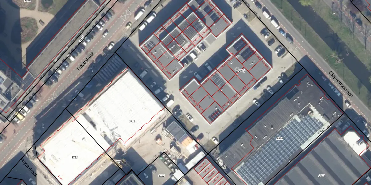 Het perceel waarop Treubstraat 17-U013 staat heeft een oppervlakte van 5422 m². Dit is een zeer groot perceel. De perceeloppervlakte wordt geregistreerd door het Kadaster. Gedetailleerde informatie over de maten van dit perceel kunt u vinden in het rapport Kadastrale kaart met maatvoering van Treubstraat 17-U013.