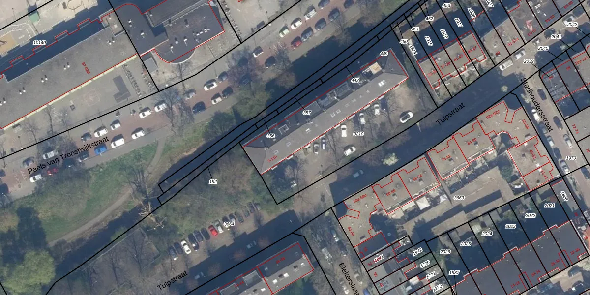 Het perceel waarop Tulpstraat 11-f staat heeft een oppervlakte van 1753 m². Dit is een zeer groot perceel. De perceeloppervlakte wordt geregistreerd door het Kadaster. Gedetailleerde informatie over de maten van dit perceel kunt u vinden in het rapport Kadastrale kaart met maatvoering van Tulpstraat 11-f.