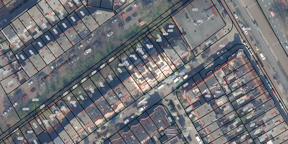 Het adres ligt op het perceel RWK01-A-2353, dat zich in de kadastrale gemeente Rijswijk bevindt. De gemiddelde perceelgrootte in Rijswijk is 1115,37 m². Dit perceel is kleiner: de perceeloppervlakte bedraagt 201 m². Het kleinste perceel in de kadastrale gemeente is 0 m² groot. De grootste perceeloppervlakte is 44,3 ha. Op het perceel zijn 2 adressen aanwezig. De huidige grenzen van het perceel zijn digitaal in de Basisregistratie Kadaster (BRK) geregistreerd op 24-02-2003.