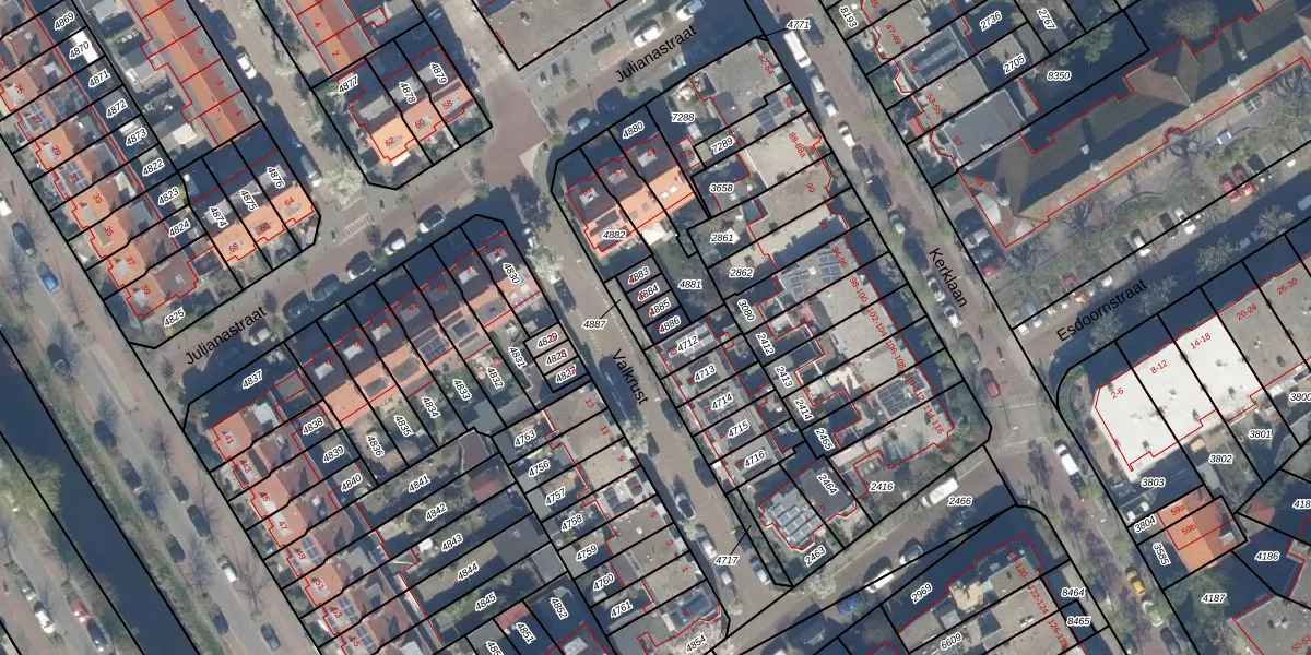 Het perceel waarop Valkrust 12 staat heeft een oppervlakte van 19 m². Dit is een klein perceel. De perceeloppervlakte wordt geregistreerd door het Kadaster. Gedetailleerde informatie over de maten van dit perceel kunt u vinden in het rapport Kadastrale kaart met maatvoering van Valkrust 12.