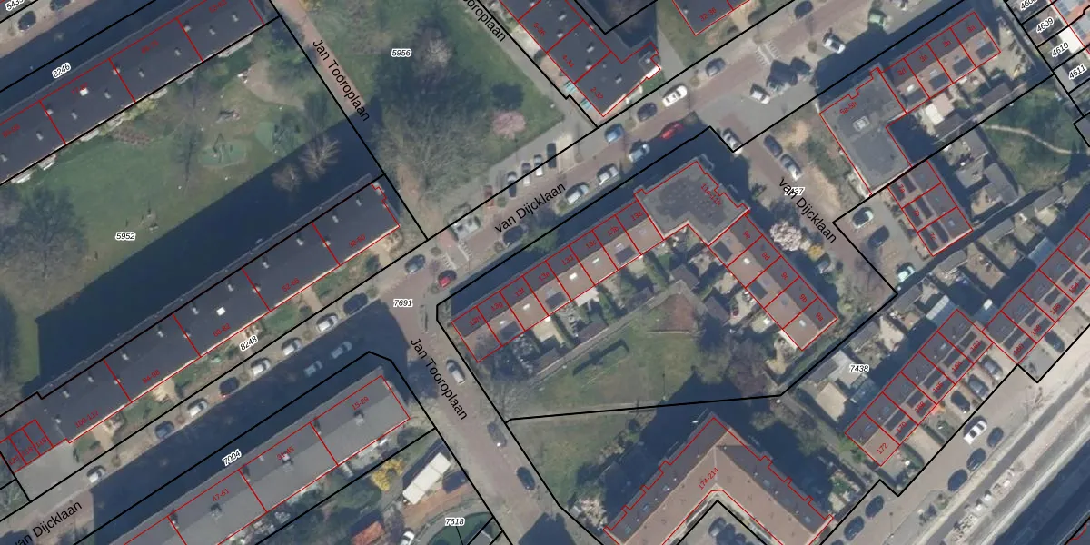 Het perceel waarop van Dijcklaan 13-e staat heeft een oppervlakte van 3775 m². Dit is een zeer groot perceel. De perceeloppervlakte wordt geregistreerd door het Kadaster. Gedetailleerde informatie over de maten van dit perceel kunt u vinden in het rapport Kadastrale kaart met maatvoering van van Dijcklaan 13-e.