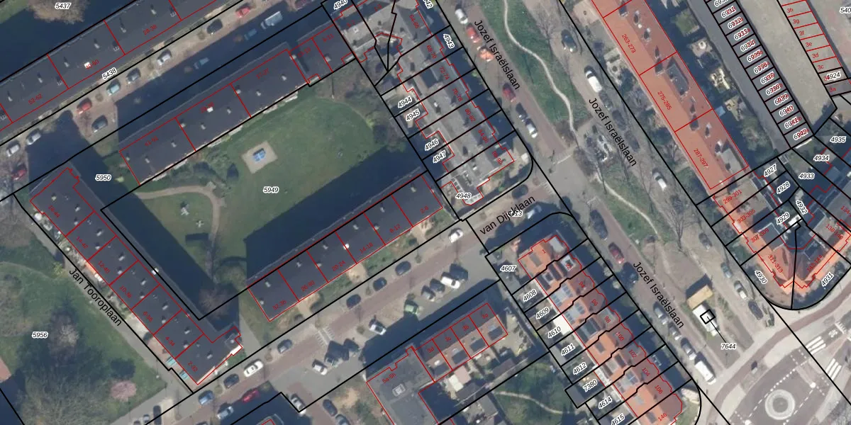 Het adres is gelegen op perceel 5950 in de sectie D en de kadastrale gemeente Rijswijk. De kadastrale aanduiding is aldus RWK01-D-5950. De gemiddelde perceeloppervlakte in de kadastrale gemeente Rijswijk is 1114,17 m². Dit perceel is met zijn 2756 m² dus groter dan gemiddeld. De grootste perceeloppervlakte in de kadastrale gemeente is 44,3 ha. De kleinste oppervlakte bedraagt 0 m². Op het perceel liggen in totaal 62 adressen. In de Basisregistratie Kadaster (BRK) werden de grenzen van het perceel geregistreerd op 24-02-2003.