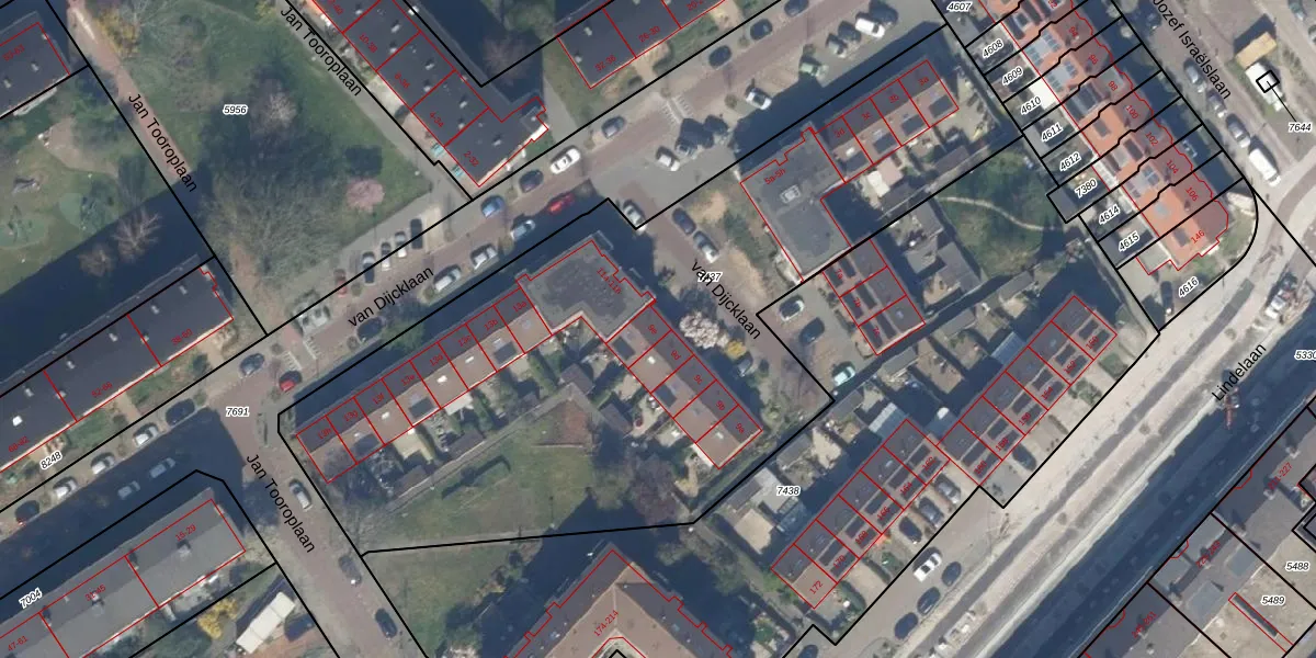 van Dijcklaan 9-e is gelegen op kadastraal perceel RWK01D7437. Deze kadastrale aanduiding is uniek en wordt gebruikt door het Kadaster om eigendomsrechten en andere zakelijke rechten vast te leggen. Het perceel maakt onderdeel uit van de kadastrale gemeente Rijswijk.