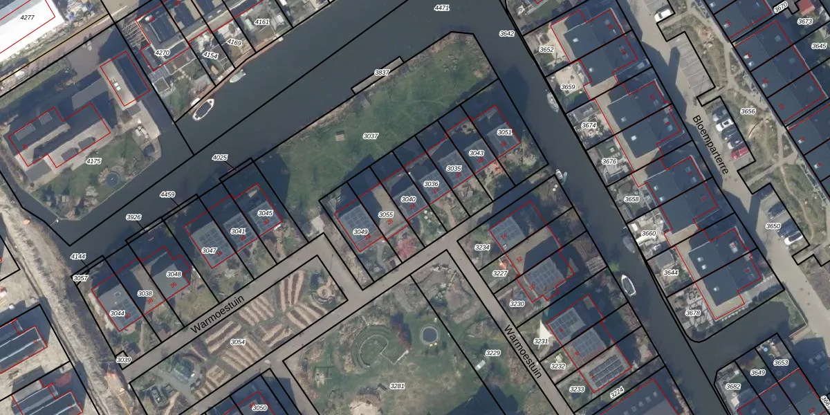 Warmoestuin 24 is gelegen op kadastraal perceel RWK01I3040. Deze kadastrale aanduiding is uniek en wordt gebruikt door het Kadaster om eigendomsrechten en andere zakelijke rechten vast te leggen. Het perceel maakt onderdeel uit van de kadastrale gemeente Rijswijk.