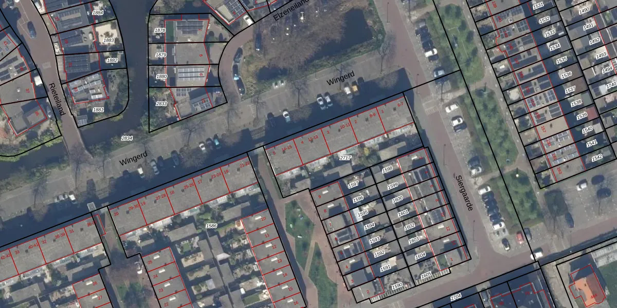 Wingerd 13 is gelegen op kadastraal perceel RWK01C2717. Deze kadastrale aanduiding is uniek en wordt gebruikt door het Kadaster om eigendomsrechten en andere zakelijke rechten vast te leggen. Het perceel maakt onderdeel uit van de kadastrale gemeente Rijswijk.