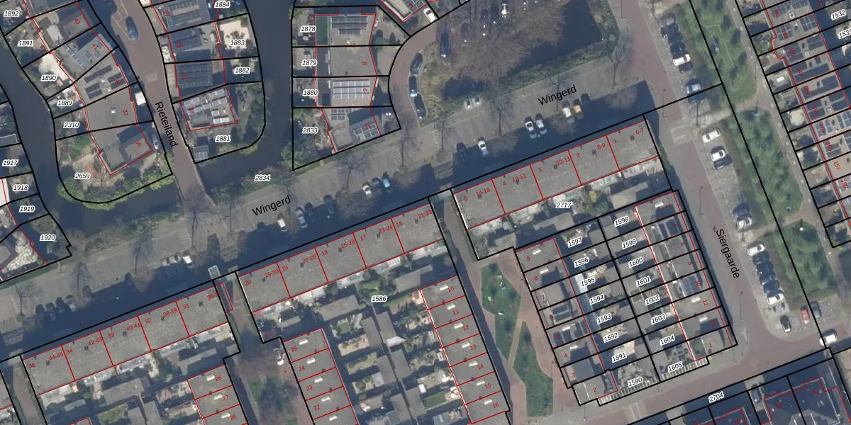 Wingerd 16 is gelegen op kadastraal perceel RWK01C1586. Deze kadastrale aanduiding is uniek en wordt gebruikt door het Kadaster om eigendomsrechten en andere zakelijke rechten vast te leggen. Het perceel maakt onderdeel uit van de kadastrale gemeente Rijswijk.