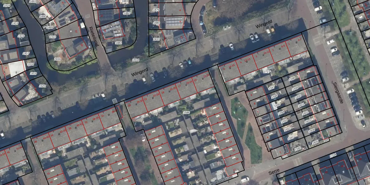 Het perceel waarop Wingerd 24 staat heeft een oppervlakte van 2715 m². Dit is een zeer groot perceel. De perceeloppervlakte wordt geregistreerd door het Kadaster. Gedetailleerde informatie over de maten van dit perceel kunt u vinden in het rapport Kadastrale kaart met maatvoering van Wingerd 24.