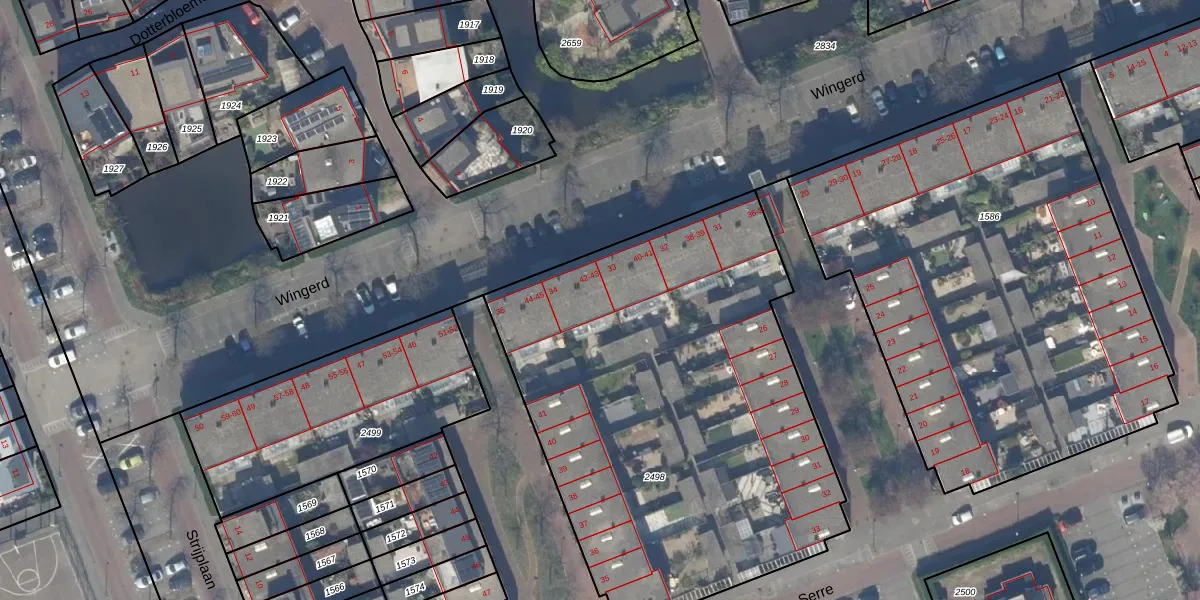 Het perceel waarop Wingerd 42 staat heeft een oppervlakte van 2715 m². Dit is een zeer groot perceel. De perceeloppervlakte wordt geregistreerd door het Kadaster. Gedetailleerde informatie over de maten van dit perceel kunt u vinden in het rapport Kadastrale kaart met maatvoering van Wingerd 42.