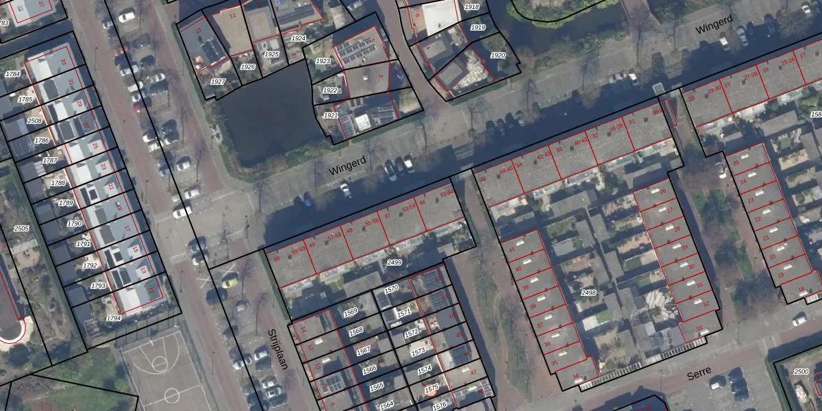 Het perceel waarop Wingerd 47 staat heeft een oppervlakte van 910 m². Dit is een groot perceel. De perceeloppervlakte wordt geregistreerd door het Kadaster. Gedetailleerde informatie over de maten van dit perceel kunt u vinden in het rapport Kadastrale kaart met maatvoering van Wingerd 47.