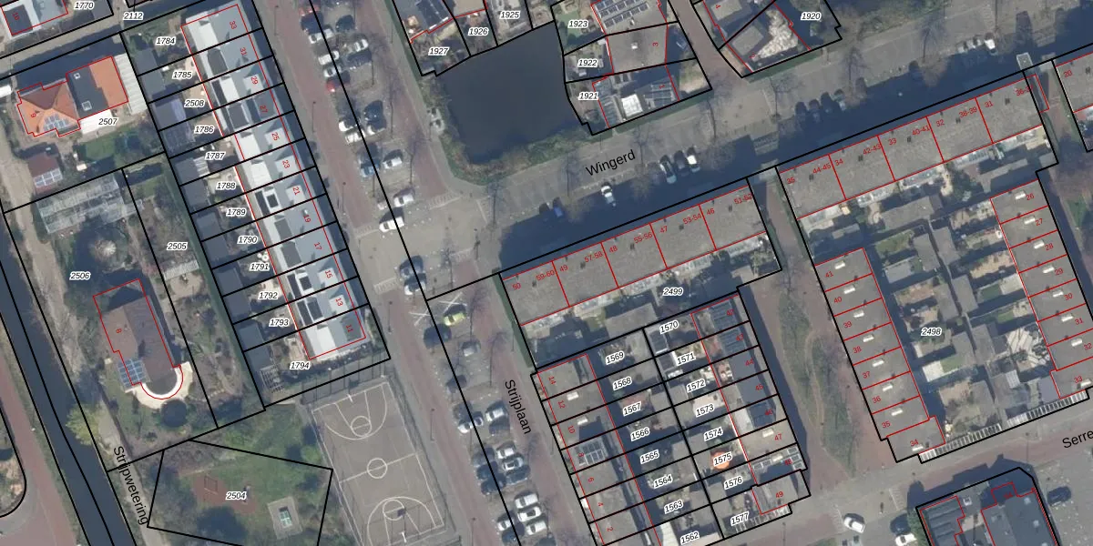 Wingerd 50 is gelegen op kadastraal perceel RWK01C2499. Deze kadastrale aanduiding is uniek en wordt gebruikt door het Kadaster om eigendomsrechten en andere zakelijke rechten vast te leggen. Het perceel maakt onderdeel uit van de kadastrale gemeente Rijswijk.