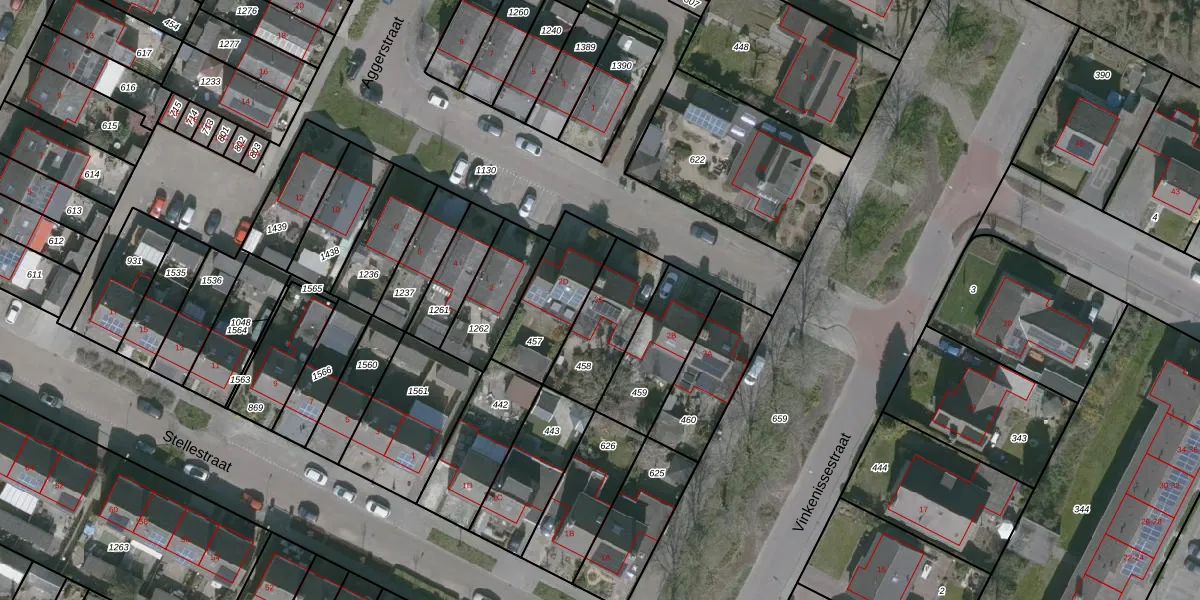 Gebruik de zoekbalk of klik op een perceel voor informatie over de adressen binnen dit perceel.