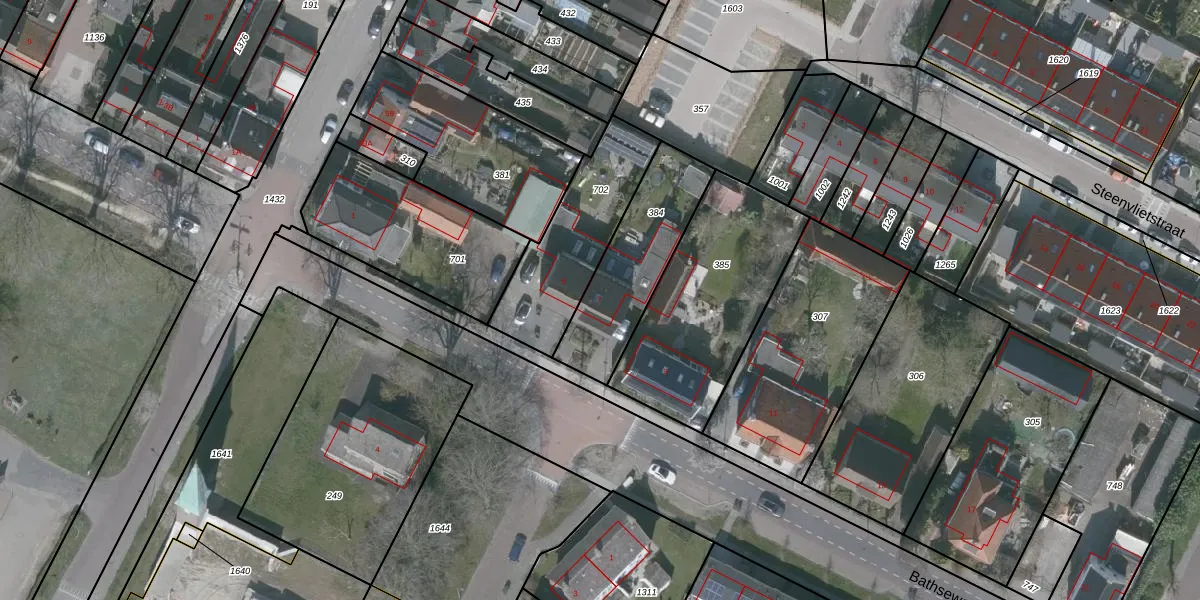 Het perceel waarop Bathseweg 7 staat heeft een oppervlakte van 425 m². Dit is een groot perceel. De perceeloppervlakte wordt geregistreerd door het Kadaster. Gedetailleerde informatie over de maten van dit perceel kunt u vinden in het rapport Kadastrale kaart met maatvoering van Bathseweg 7.