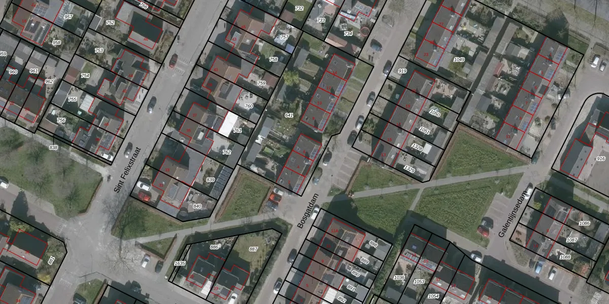 Het perceel waarop Bosgatdam 6 staat heeft een oppervlakte van 1215 m². Dit is een zeer groot perceel. De perceeloppervlakte wordt geregistreerd door het Kadaster. Gedetailleerde informatie over de maten van dit perceel kunt u vinden in het rapport Kadastrale kaart met maatvoering van Bosgatdam 6.