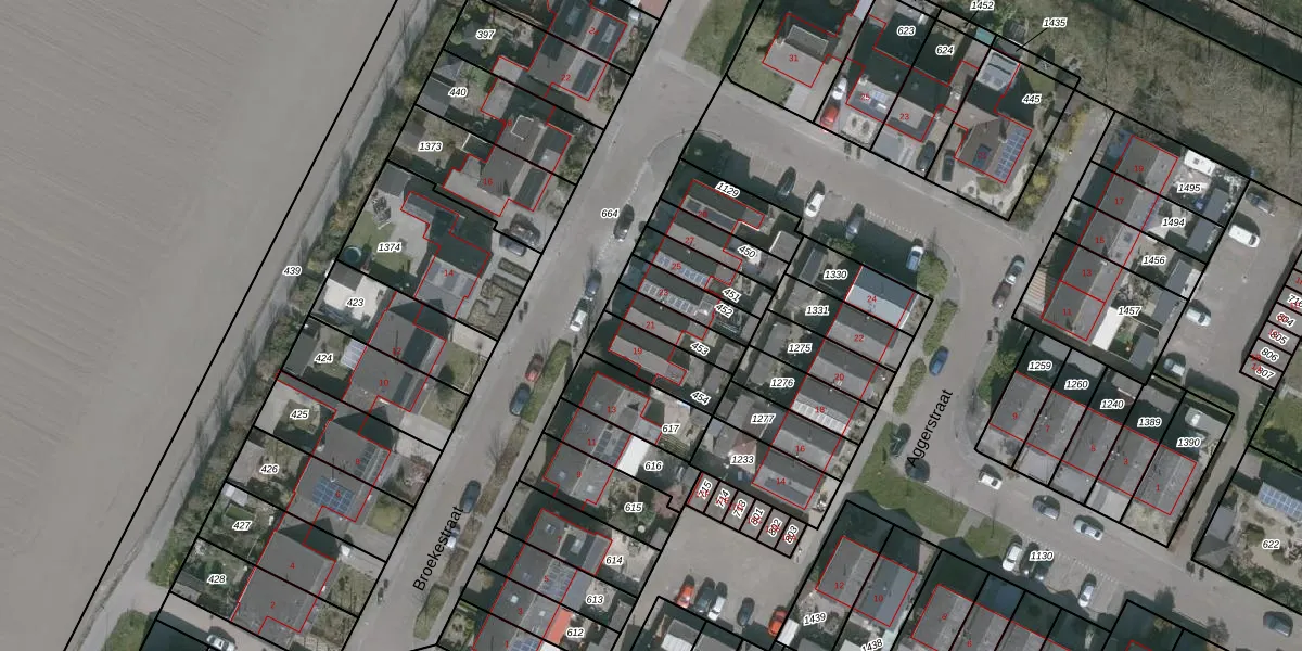 Het perceel waarop Broekestraat 21 staat heeft een oppervlakte van 107 m². Dit is een middelgroot perceel. De perceeloppervlakte wordt geregistreerd door het Kadaster. Gedetailleerde informatie over de maten van dit perceel kunt u vinden in het rapport Kadastrale kaart met maatvoering van Broekestraat 21.