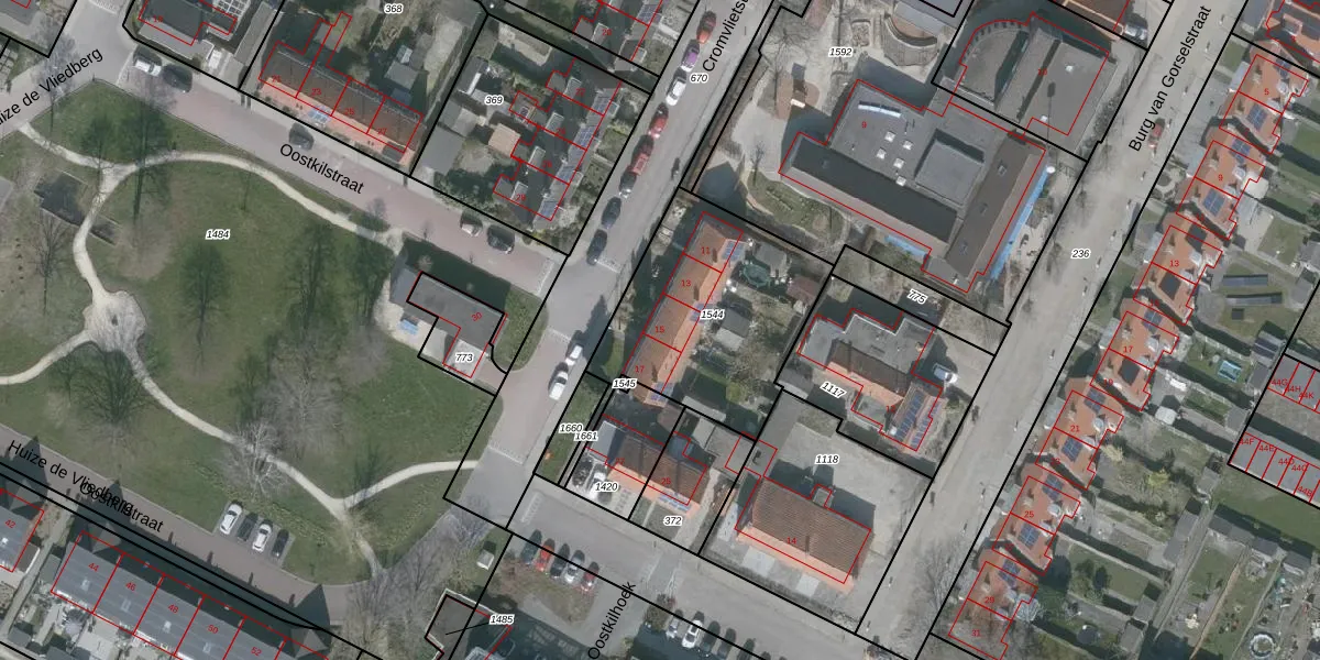 Het perceel waarop Cromvlietstraat 15 staat heeft een oppervlakte van 805 m². Dit is een groot perceel. De perceeloppervlakte wordt geregistreerd door het Kadaster. Gedetailleerde informatie over de maten van dit perceel kunt u vinden in het rapport Kadastrale kaart met maatvoering van Cromvlietstraat 15.